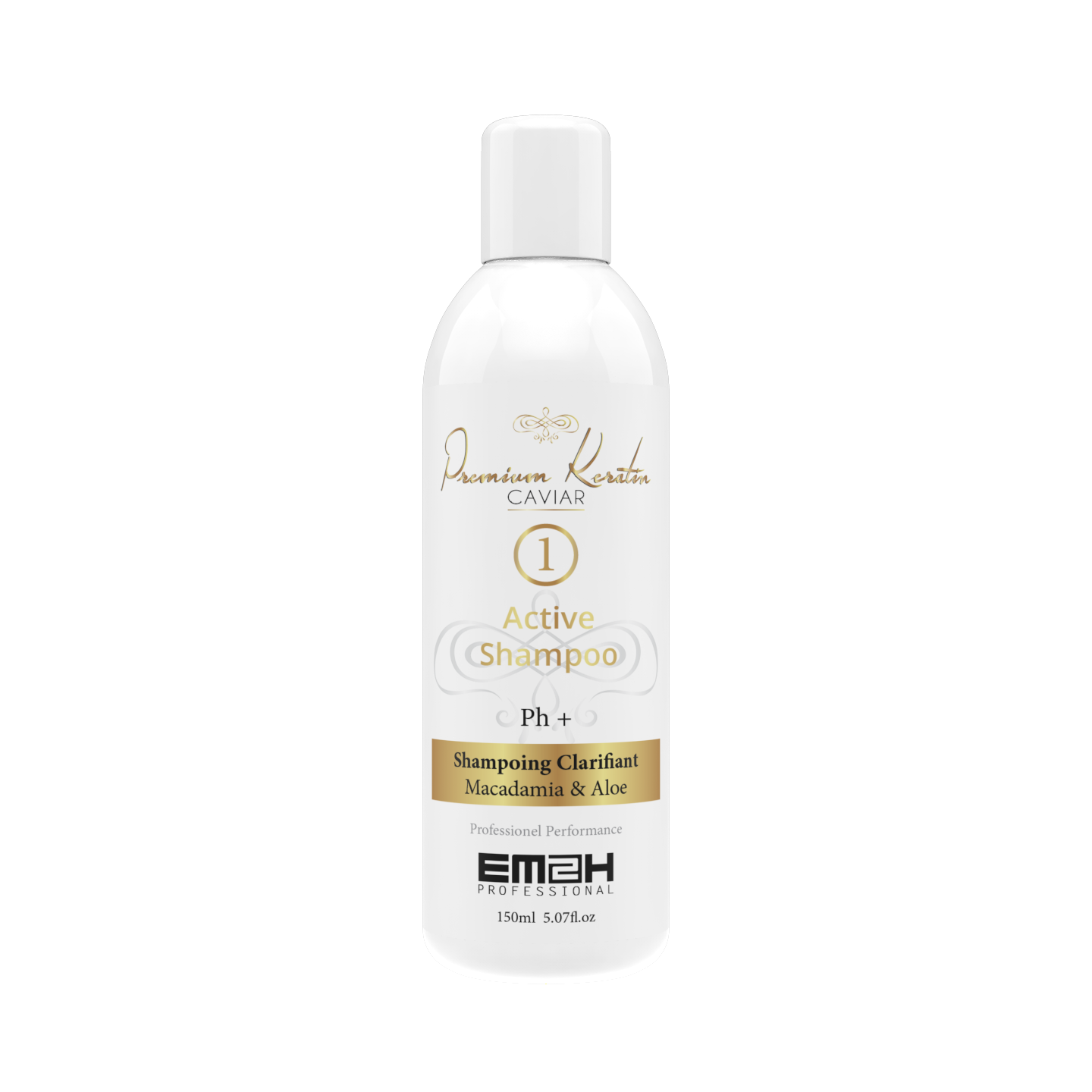 - Appliquer le shampoing : Massez doucement le Premium Keratin Caviar Activ Shampoing sur vos cheveux mouillés.